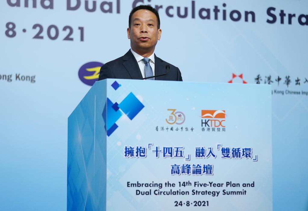 作為國家“十四五”規劃宣講團在港系列宣講活動的重要組成部分,“擁抱‘十四五’ 融入‘雙循環’”高峰論壇24日在香港會展中心舉行,由香港中國企業協會和香港貿發局主辦。來自香港工商界、學術界、外國商會和外資企業代表,以及中企協會會員代表等300余人與會。林建岳出席論壇開幕式時發表上述致辭。