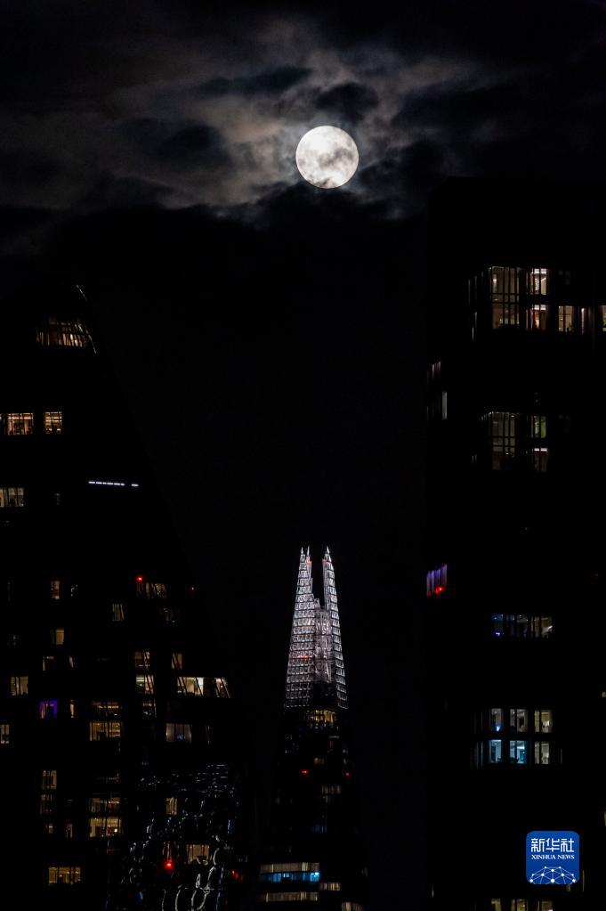 9月21日,滿月在英國(guó)倫敦的“碎片大廈”上空升起。