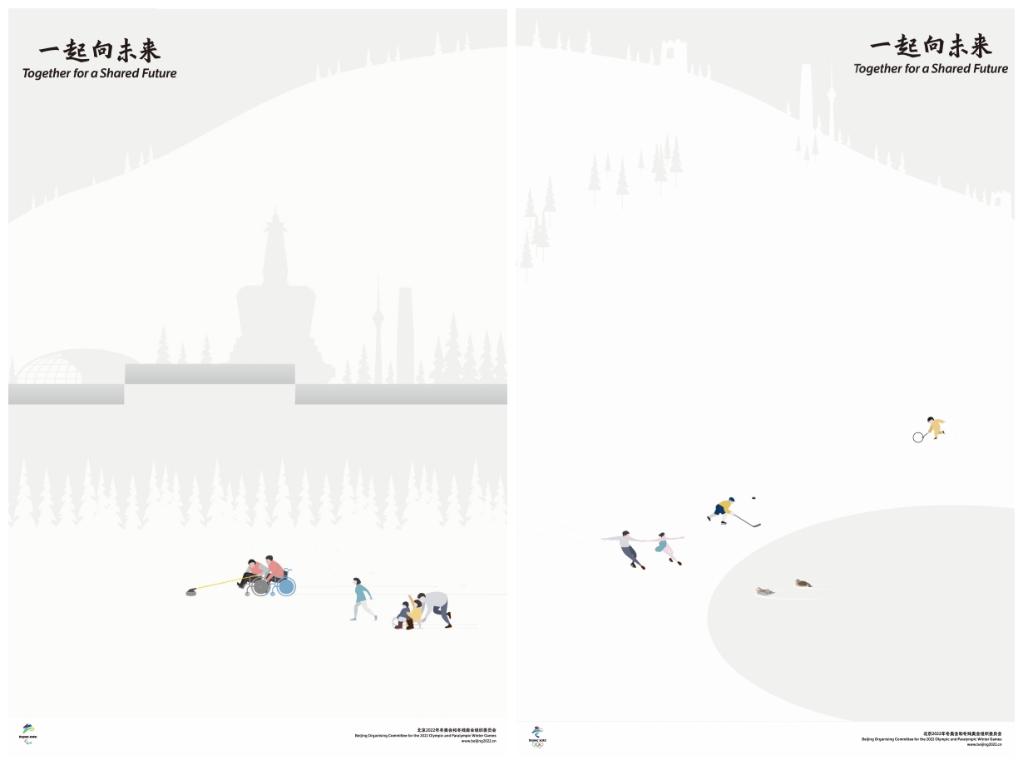 官方海報已于2020年7月由北京冬奧組委設(shè)計完成,共三組六幅。