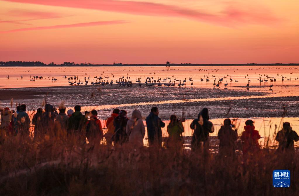 11月28日,在山東省榮成市大天鵝國家級自然保護區(qū)的一處湖畔,市民和攝影愛好者在觀賞大天鵝。