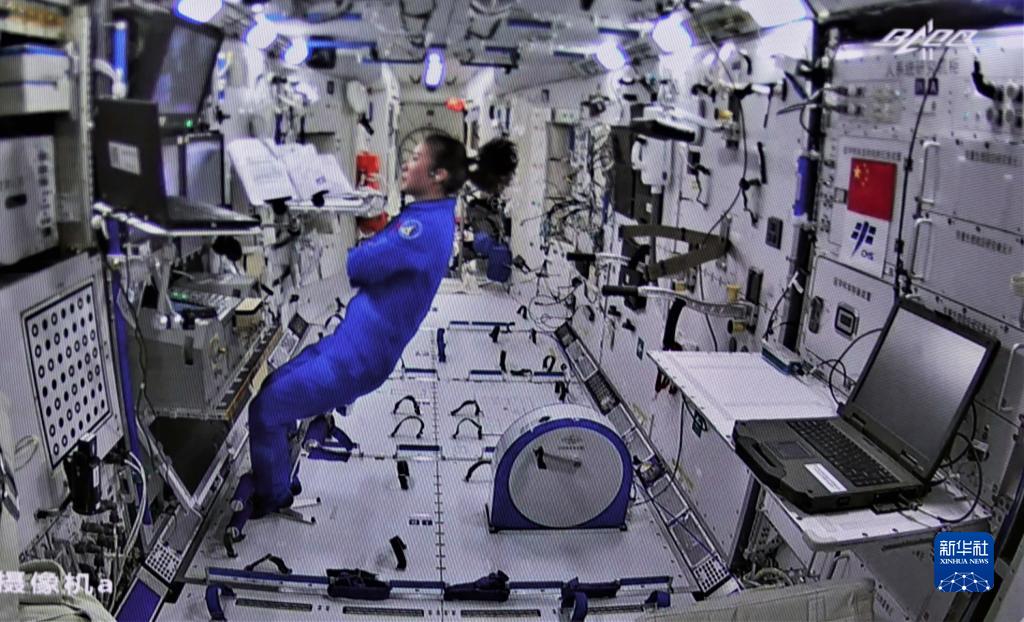 12月26日在北京航天飛行控制中心拍攝的神舟十三號航天員王亞平在核心艙內工作場景。新華社記者 郭中正 攝