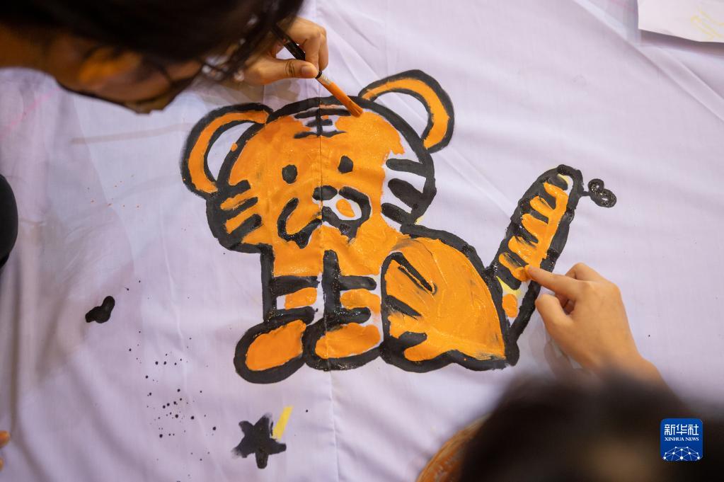 12月26日,學生們在馬來西亞彭亨州文冬創作老虎主題年畫。