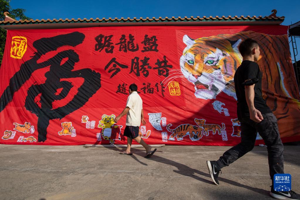 為迎接農歷虎年的到來,文冬當地一家華人團體邀請畫家和學生一起創作了一幅11.5米長、4.5米寬的老虎年畫。新華社發(張紋綜攝)