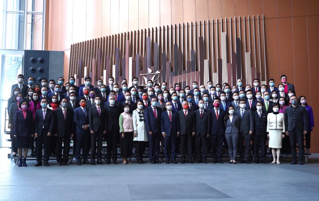 1月3日11時(shí)許,香港特區(qū)第七屆立法會(huì)90位議員開始宣誓。這是議員在儀式后合影。新華社記者 呂小煒 攝