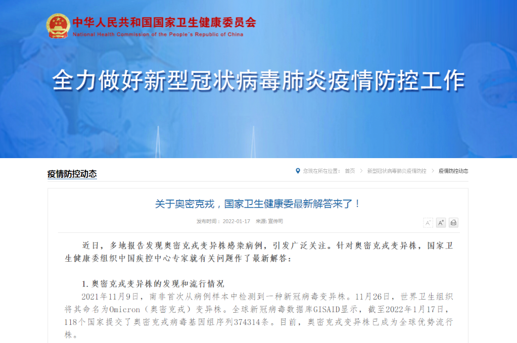 新華社北京1月17日電? 題:奧密克戎已成全球優勢流行株 國家衛健委最新解答來了!