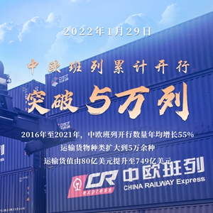 經過多年的市場培育,中歐班列已實現常態化開行、規?;\營。2016年至2021年,中歐班列年開行數量由1702列增長到15183列,年均增長55%;運輸貨物品類從最初的手機、筆記本電腦等IT產品,擴大到汽車配件及整車、化工、機電、糧食、酒類、木材等5萬余種;年運輸貨值由80億美元提升至749億美元。(記者樊曦、趙宇飛、李力可)