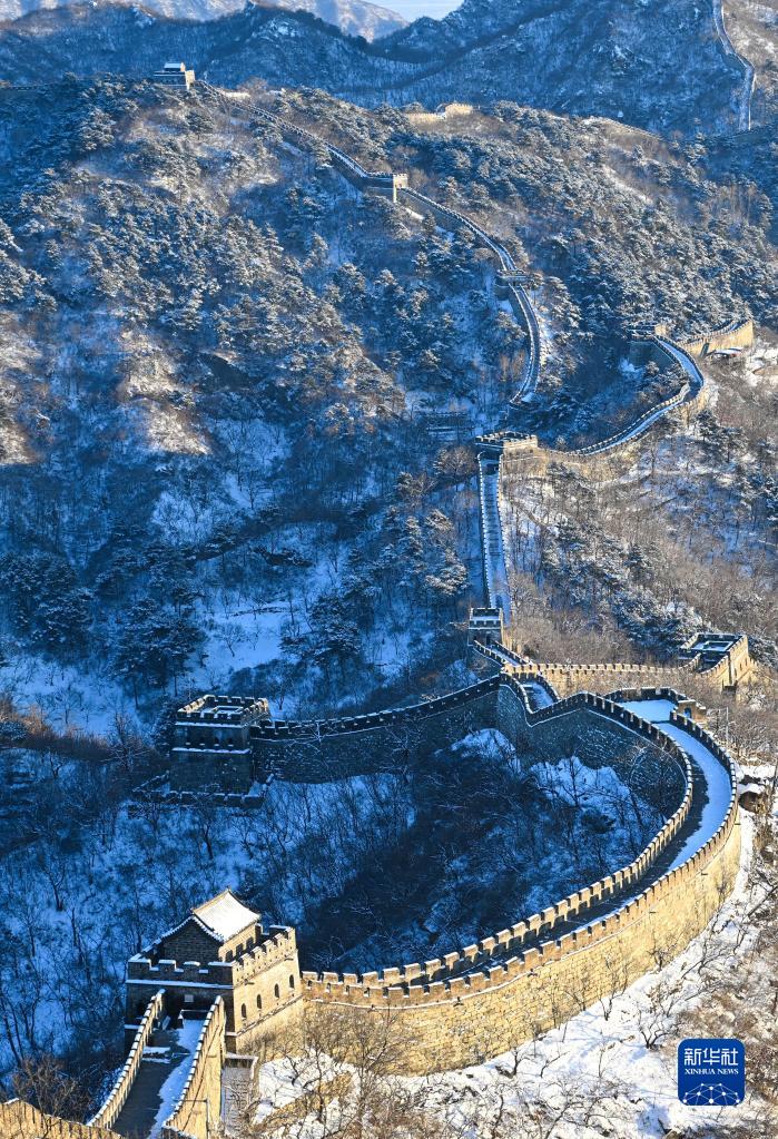 近日,北京迎來降雪天氣。雪后的慕田峪長城猶如長龍臥于銀裝素裹的山脊,蔚為壯觀。