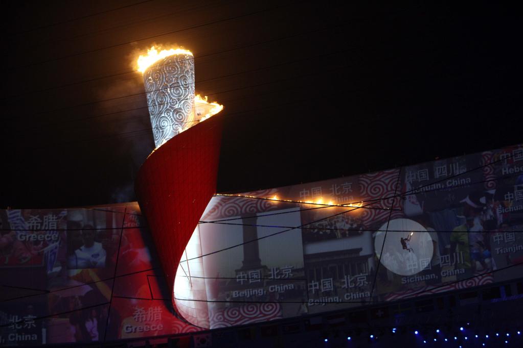圖為2008年8月8日,最后一棒火炬手李寧在北京奧運會開幕式上點燃主火炬。新華社記者 姚大偉 攝