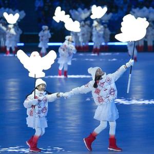 答:最打動我的環(huán)節(jié)應該是主題歌《雪花》的演唱。大概800名孩子拿著“和平鴿”,在場地上嬉戲玩耍,是一個自由快樂的狀態(tài)。孩子們腳底下,通過全世界最大的人工智能AR捕捉系統(tǒng),永遠是實時互動出現(xiàn)的閃亮的雪花,這歌唱的也是一朵雪花。中心區(qū),我們主火炬雪花臺也出來,我覺得那一刻你會很感動。