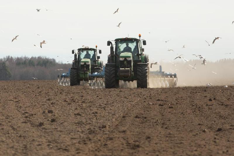 2021年4月15日,農(nóng)民在俄羅斯列寧格勒州一農(nóng)場內(nèi)播種春小麥。新華社發(fā)(莫京娜攝)