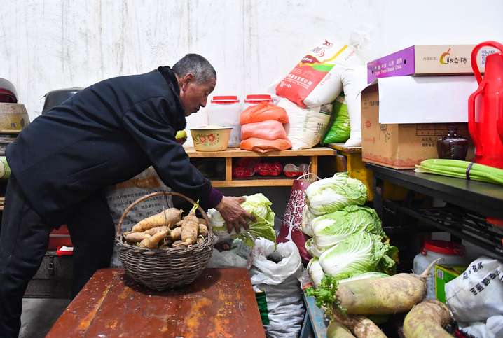 段村村民蔡文明整理自家產(chǎn)的蔬菜。(新華社記者柴婷攝)