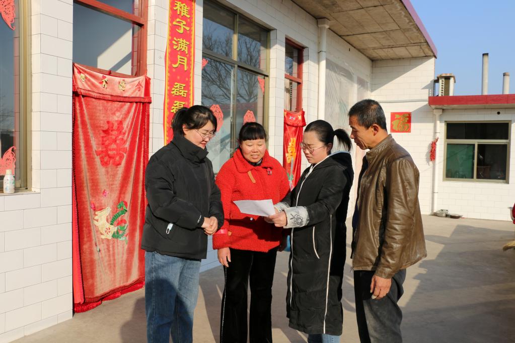 段村村干部為村民介紹惠農(nóng)政策。(受訪者供圖)