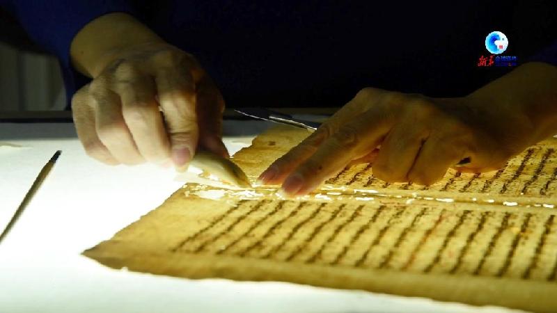 在敘利亞大馬士革老城的一間工作室里,古籍修復師拉賈·拉杰哈在發(fā)光的桌板前專注地修復一張破損的古籍紙張。