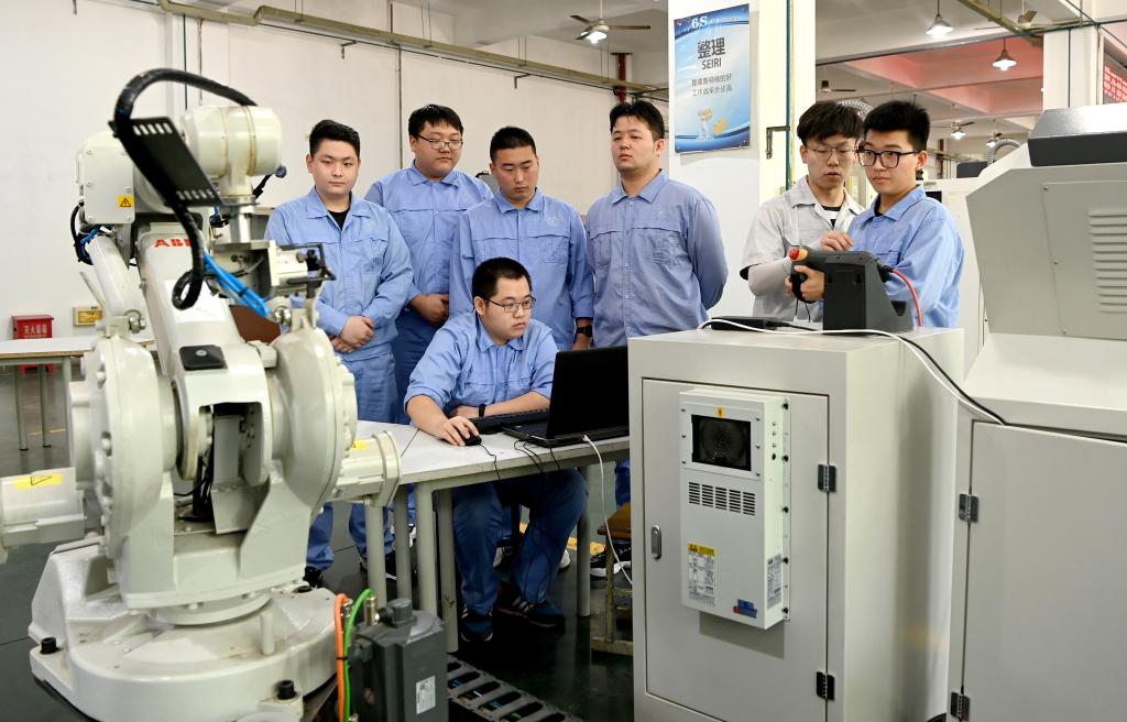 西安技師學院數控技術專業學生在學習操控數控機床(4月27日攝)。新華社記者劉瀟攝