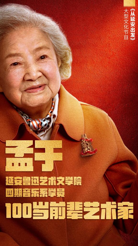 今年,延安文藝座談會召開80周年之際,孟奶奶恰好百歲。中央廣播電視總臺大型文化節目《從延安出發》第一期請到了這位百歲老人。節目中,孟奶奶回憶人生故事,將我們帶回那個激情澎湃的延安。