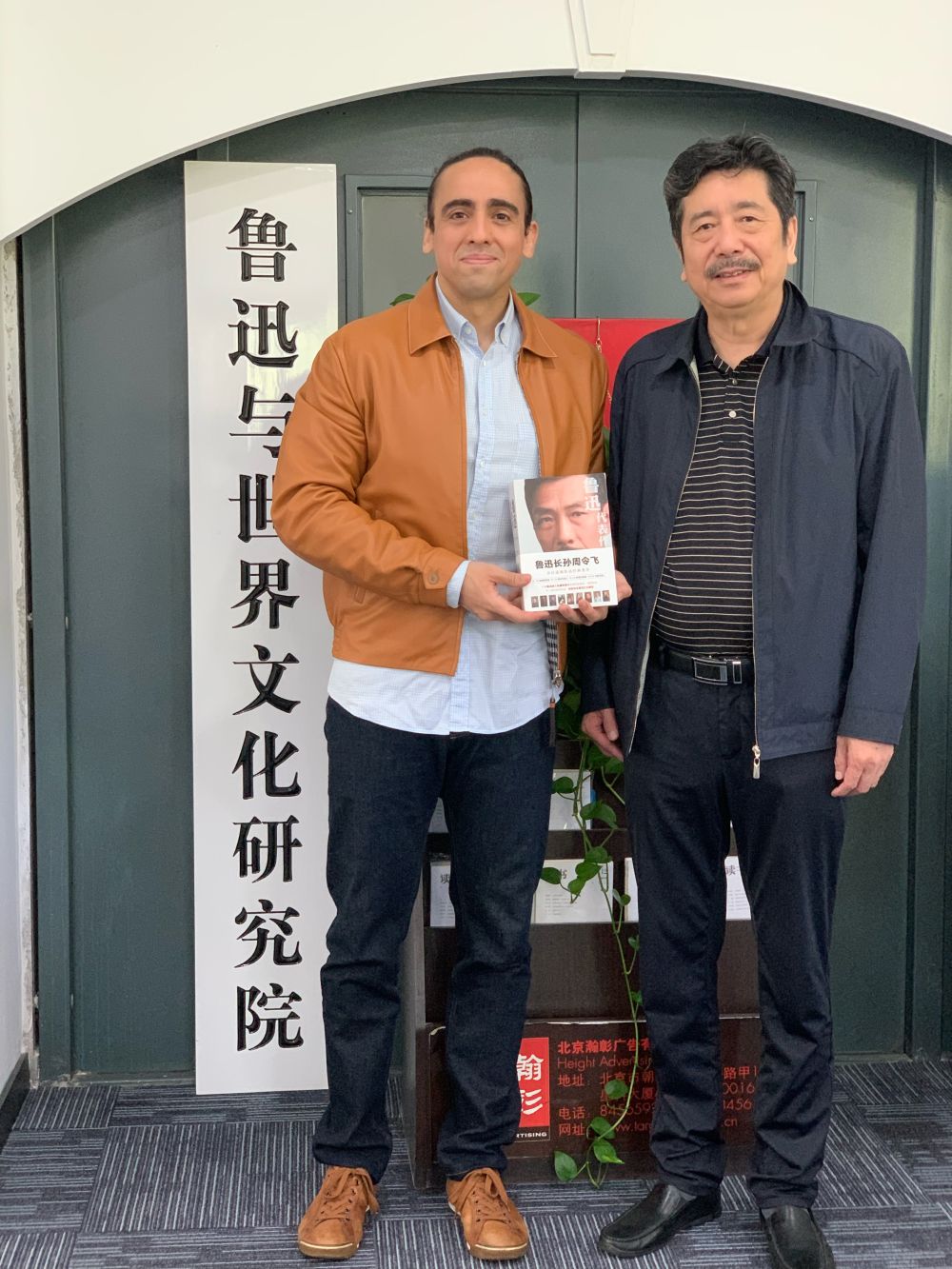 2021年9月,西內(nèi)迪諾(左)和周令飛(右)在魯迅與世界文化研究院合影。(受訪者提供)