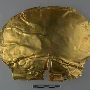 這是鄭州商城遺址高等級貴族墓M2中出土的金覆面。(鄭州市文物考古研究院供圖)