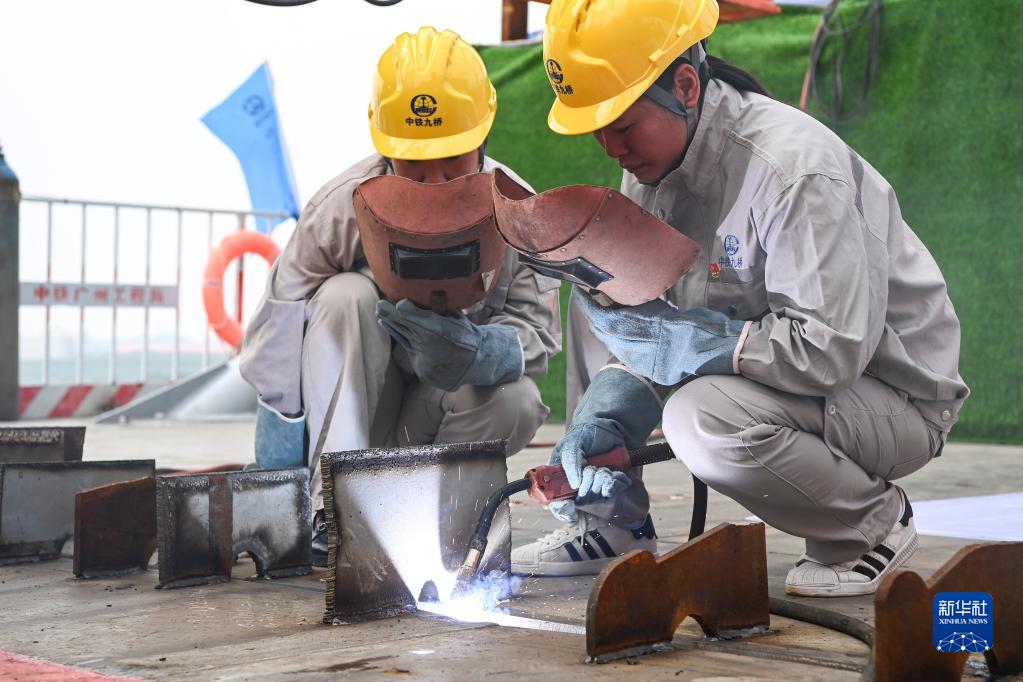 9月20日,工作人員對合龍后的橋面連接縫進行焊接。