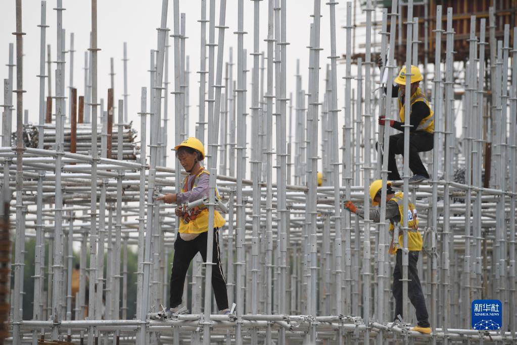 9月20日,工人在南寧國際鐵路港電商物流區施工。