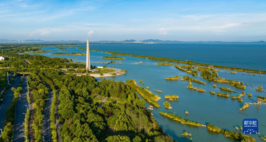 2022年7月底,環(huán)巢湖十大濕地全面建成。從空中俯瞰,巢湖宛若銀盤鑲嵌于安徽大地,環(huán)巢湖十大濕地如同一塊塊翡翠“串珠成鏈”,筑起環(huán)巢湖水生態(tài)、水安全屏障。