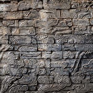 巨幅石雕祥瑞壁畫對稱分布在州橋東側南北兩岸,壁畫通高約3.3米,目前已揭露南岸壁畫長約23.2米,北岸壁畫長約21.2米,雕鐫有海馬瑞獸、飛鶴、祥云等圖案。