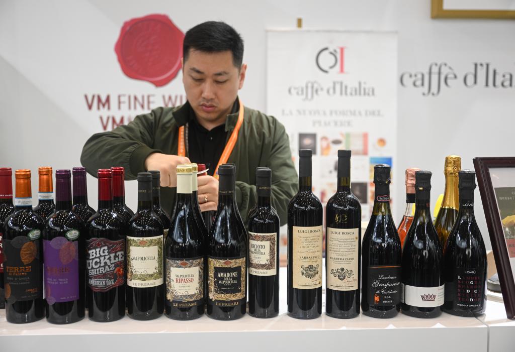 4月11日在消博會意大利企業(yè)館內(nèi)拍攝的紅酒產(chǎn)品。新華社記者蒲曉旭攝