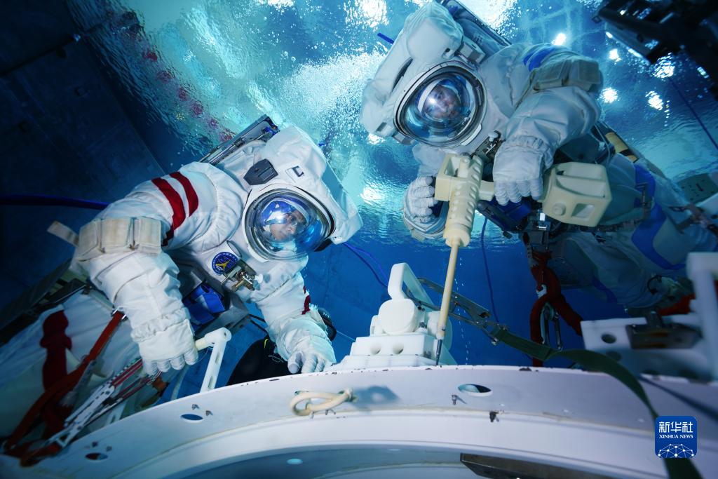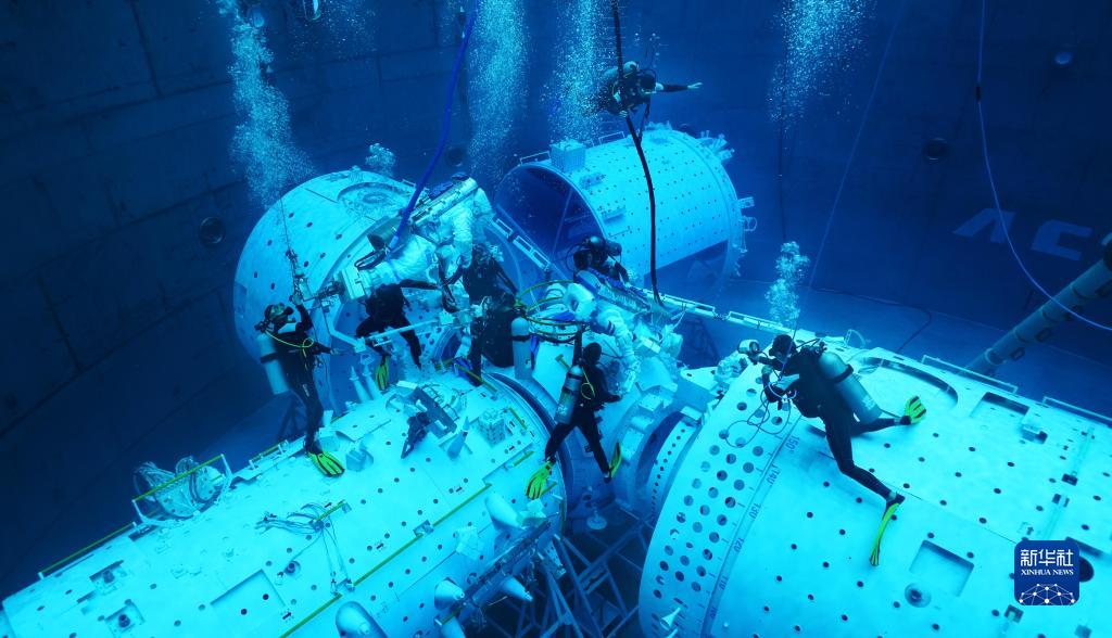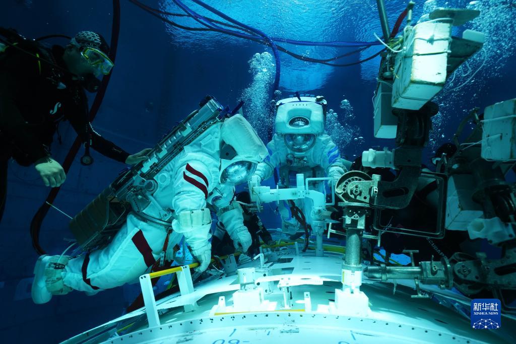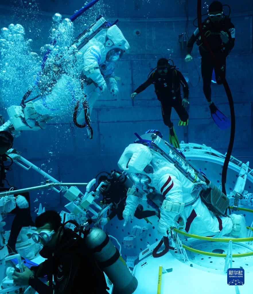 神舟十六號航天員在進行水下訓練(2022年9月14日攝)。新華社發(徐部 攝)