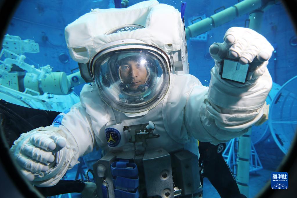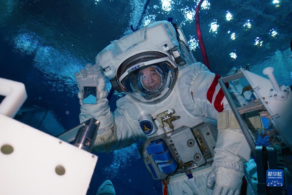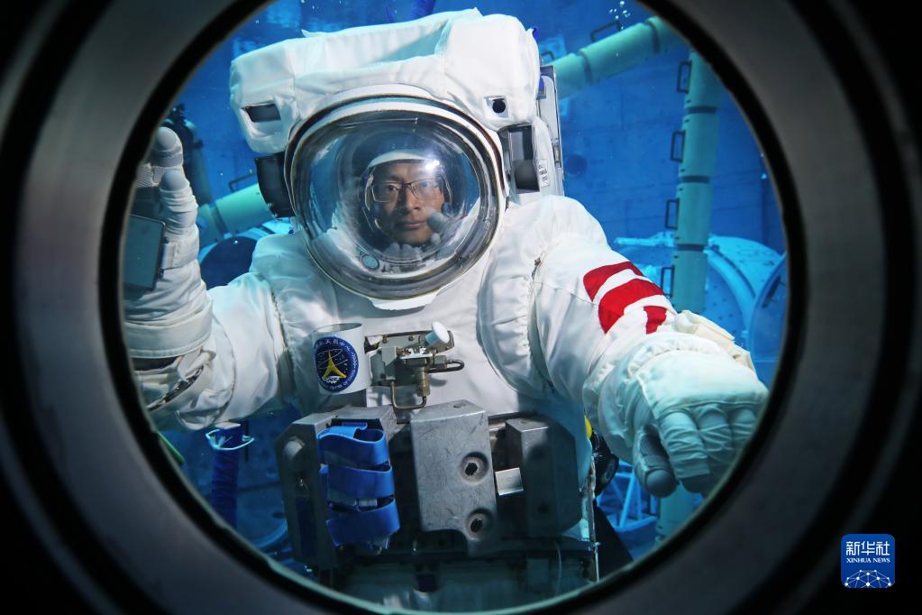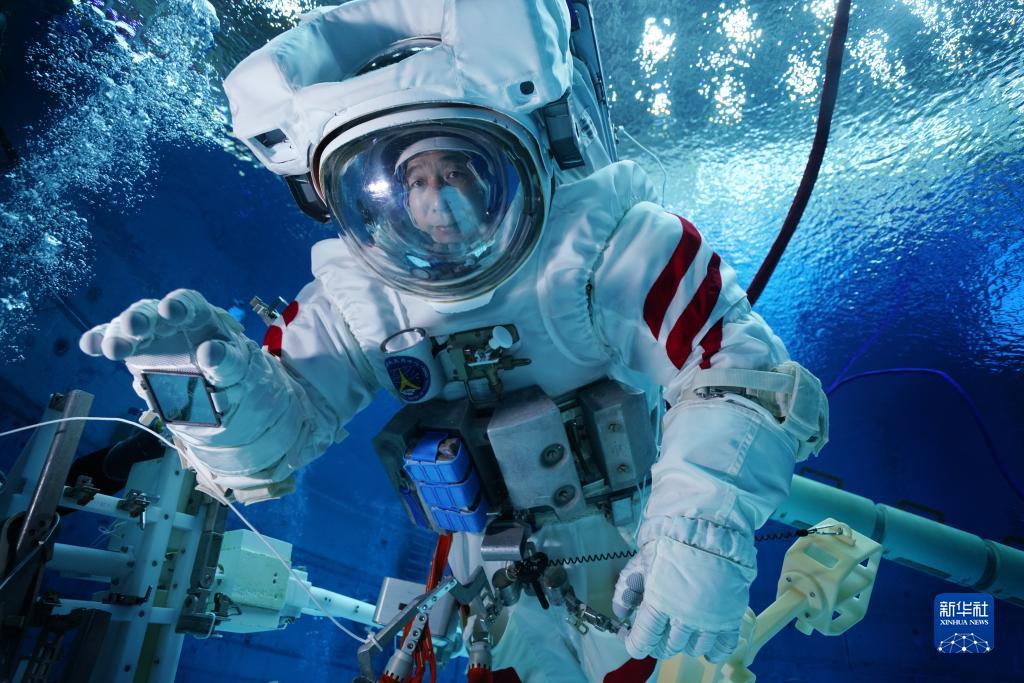神舟十六號航天員景海鵬進行水下訓練(2023年3月16日攝)。新華社發(孔方舟 攝)