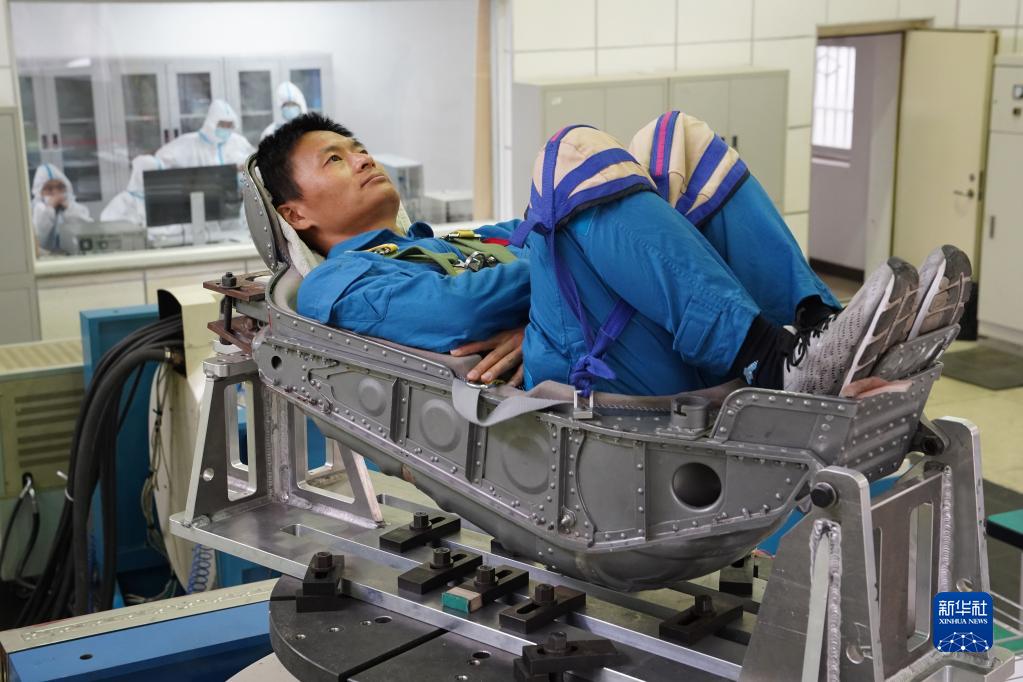 神舟十六號航天員朱楊柱在進行超重耐力訓練(2022年4月22日攝)。新華社發(王夏陽 攝)
