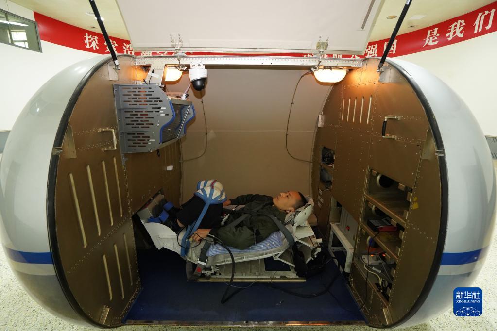 神舟十六號航天員乘組進行醫學研究項目操作(2023年3月9日攝)。新華社發(徐部 攝)