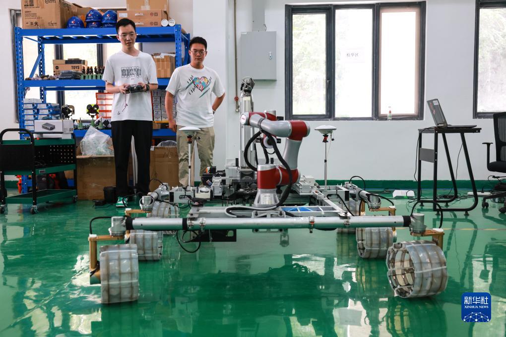 7月25日,工作人員在調試反射面激光靶標維護機器人。新華社記者 歐東衢 攝