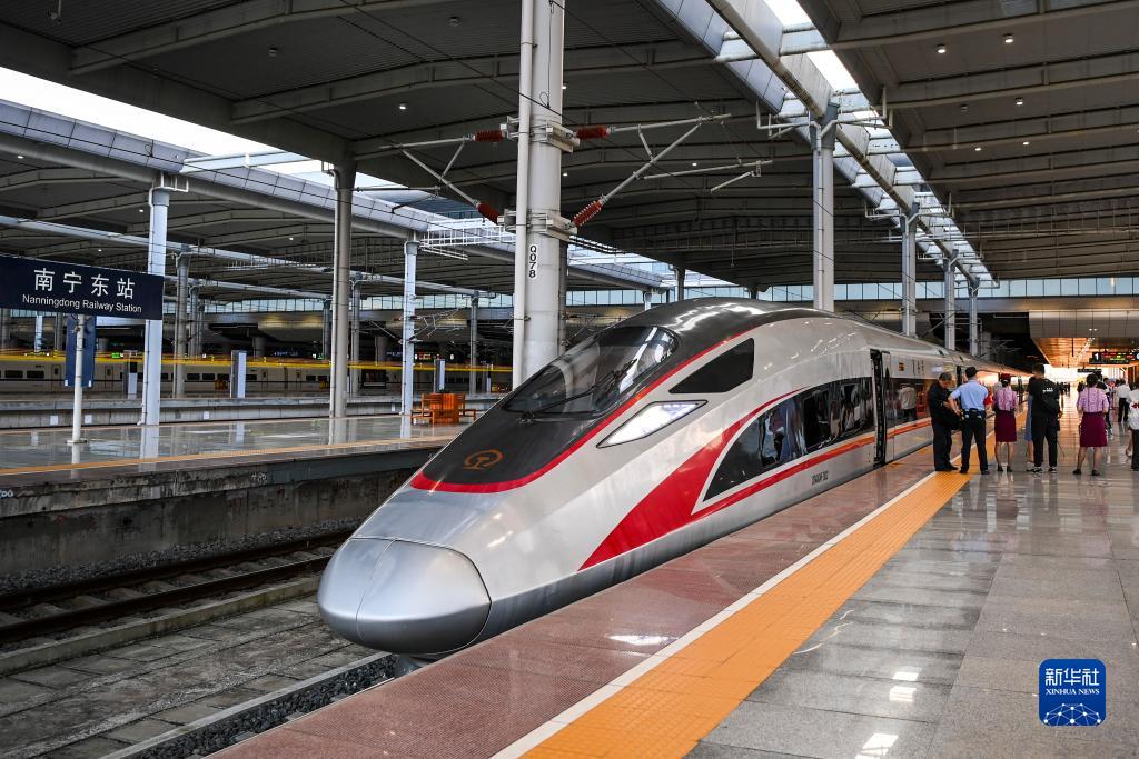 這是8月31日拍攝的貴南高鐵開通運營的首趟由南寧東開往貴陽北的G4308次列車。新華社記者 曹祎銘 攝