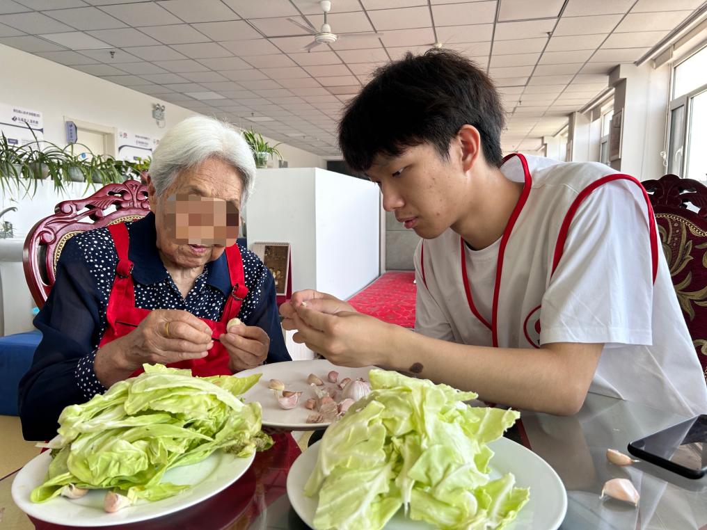 2023年6月16日,醫務社工協助認知癥老人備菜。