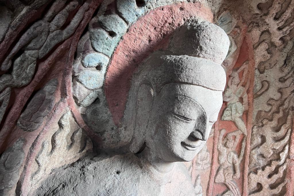 細(xì)目低垂、清秀典雅,眉如彎月、舒緩柔和——第5窟閣樓東側(cè)第二層的角落里,隱藏著一尊“云岡最美佛像”,超然一笑,慈悲盡顯。“這樣一尊線條精美流暢的佛陀造像,宛如沉靜的蓮花,微笑中飽含著睿智與寬容。”云岡研究院考古所文物修復(fù)室副主任樊莉說(shuō)。