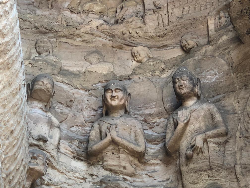 其實(shí),不僅是最具代表性的第20窟露天大佛,走進(jìn)云岡石窟,你會(huì)發(fā)現(xiàn)很多造像都是微笑著的。