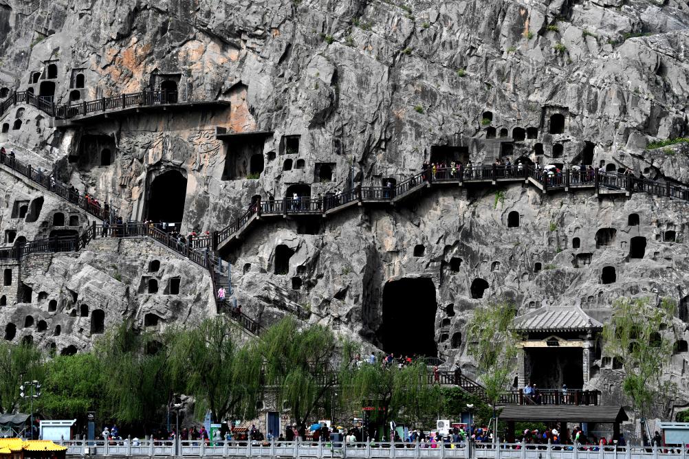 游客在龍門石窟參觀游覽。新華社記者 朱祥 攝