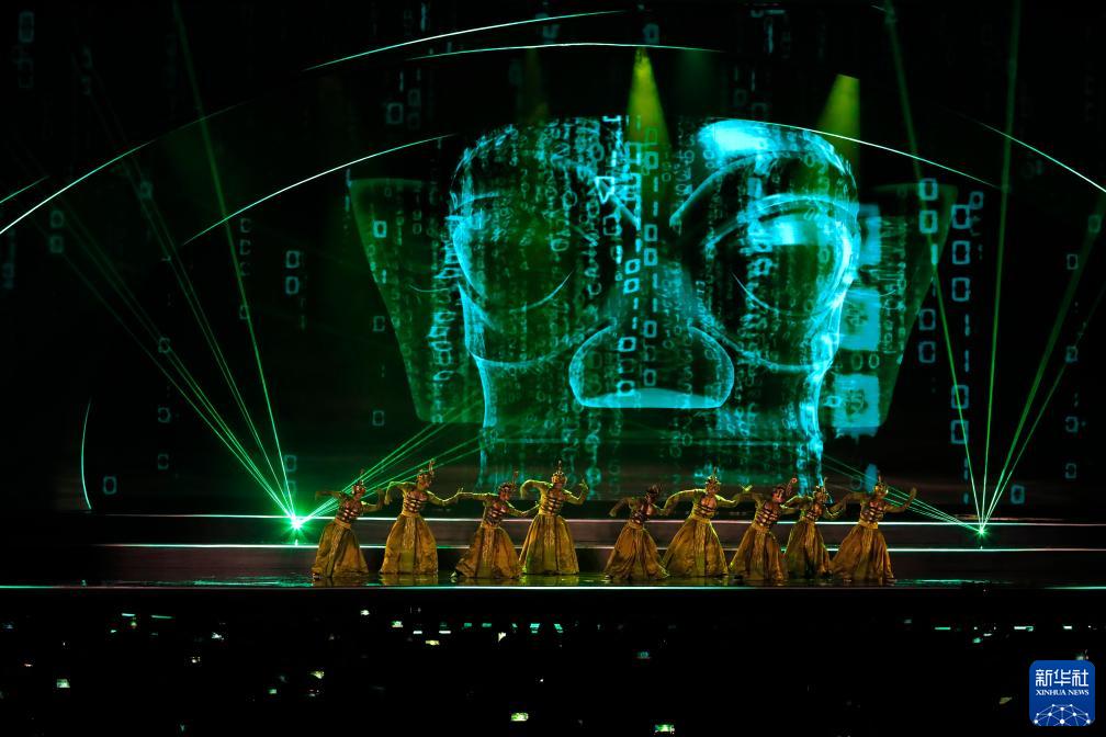 10月18日,在第81屆世界科幻大會開幕式上,演員在表演《攬星》科幻秀。新華社記者 沈伯韓 攝