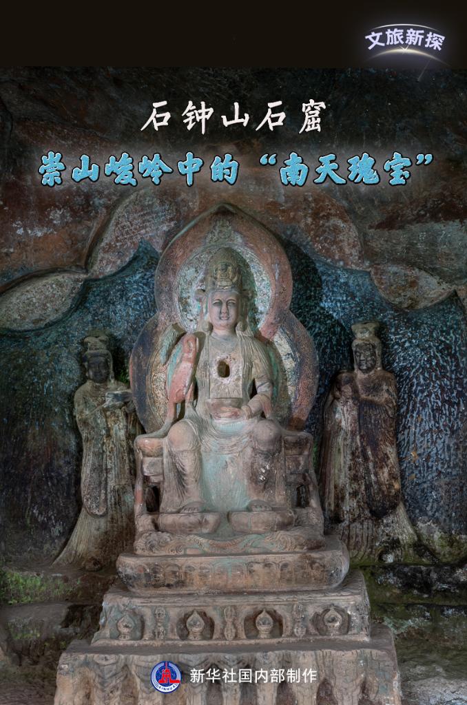 石寶山屬丹霞地貌,奇峰異石層巒疊嶂。石鐘山石窟依著連綿不絕的峭壁山石而建。據考證,石窟始鑿于公元850年,開鑿前后相續320余年,迄今共發現17窟,233軀造像。1961年,石鐘山石窟與敦煌莫高窟、大同云岡石窟、洛陽龍門石窟同時被列為第一批全國重點文物保護單位。