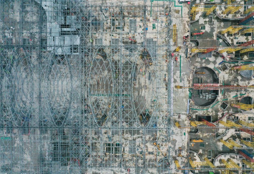 渝昆高鐵川渝段站房項目現(xiàn)場,工人正在施工。新華社記者唐奕 攝