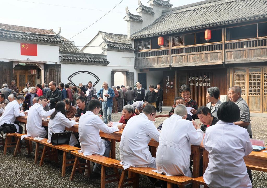 2023年10月25日,浙江省人民醫院與仙居縣人民醫院專家健康宣講團在仙居縣白塔鎮高遷村開展義診、疾病篩查。(仙居縣人民醫院供圖)