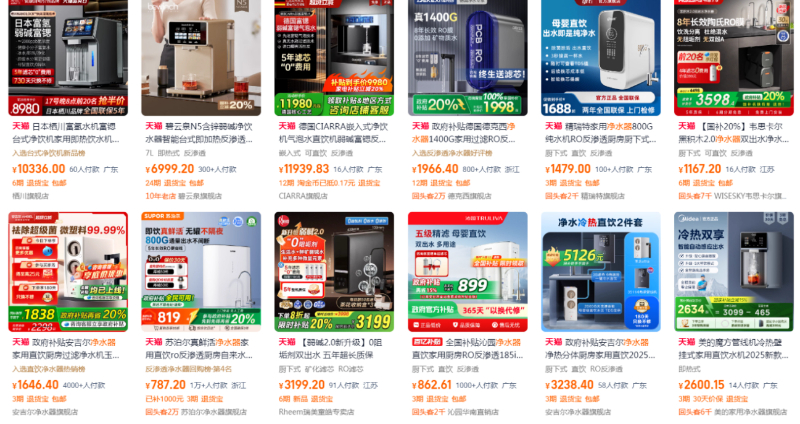记者在网络平台检索净水器相关产品时发现,价格从数百元的基础机型到上万元的高端型号均有覆盖。部分热门店铺的个别单品月销量甚至突破2万件,直观印证该品类在消费市场的高关注度与旺盛需求。