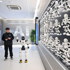 12月4日,在南京人工智能生态街区的“AI·模坊”南京智能体集散中心,一款华夏机器人在打招呼。新华社记者 季春鹏 摄