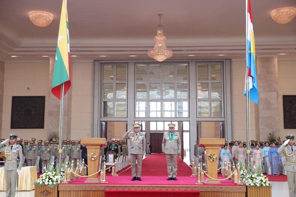 这是3月30日在缅甸内比都拍摄的缅甸国防军总司令交接仪式现场。新华社发(缅甸宣传部供图)