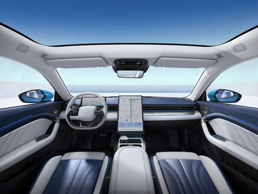 哪吒GT配置了高通骁龙8155高性能车载芯片,这也是目前车载芯片的“顶流”,CPU算力达到了105K DMIPS,车机最快启动时间仅5秒。座舱内还配备了一块17.6英寸超薄2.5K中控屏,在全场景AI语音助手的加持下,就像用户的智能管家,实现了座舱内全场景功能的无缝交互,未来感满满。