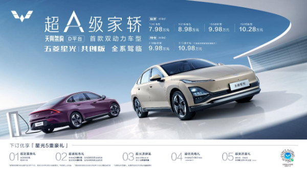 凡通过五菱汽车APP下订,且在6月30日前提车的用户,可优享“星光5重豪礼”,包括超足置换礼:享3000元置换补贴;超省贴息礼:五菱星光共创版纯电享24期0利息,至高5000元金融贴息、五菱星光共创版插混享24期0利息,至高4000元金融贴息;超长质保礼:首任非营运车主享三电终身质保;超优充电礼:五菱星光共创版纯电赠7kW充电桩(具备安装条件);超爽流量礼:五菱星光共创版纯电进阶型、插混进阶型和领航型享3年免费智能车机流量(2GB/月)。