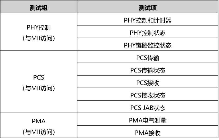 100Mbit/s电气物理层实体测试项划分情况
