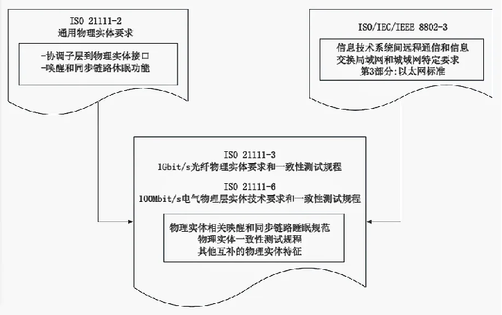 ISO21111系列标准中车载以太网物理层各部分关系