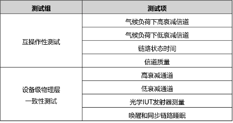 1Gbit/s光纤物理层实体测试项划分情况