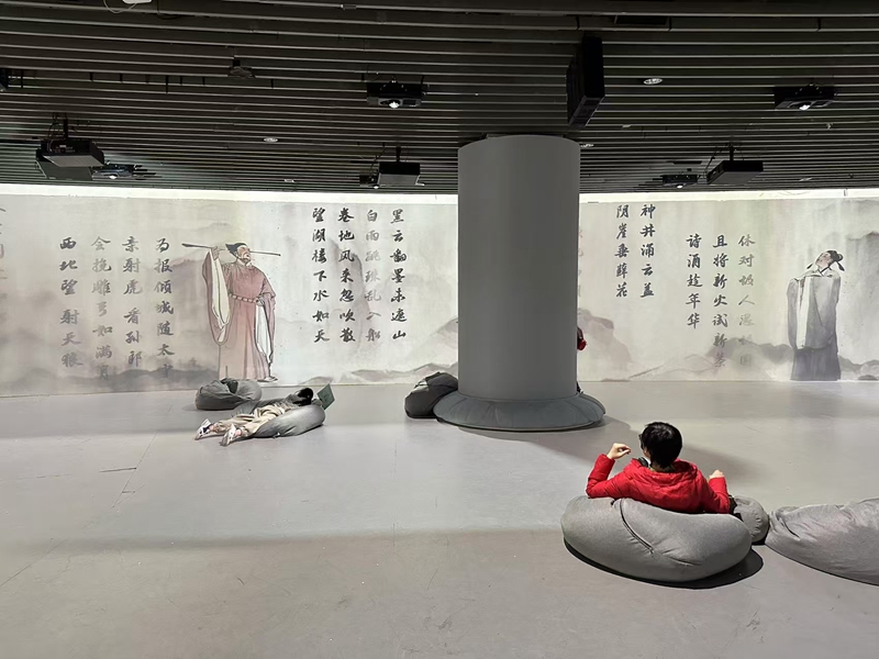 “最吸引我的是‘人生’篇章,360度全沉浸式的设计都是苏轼一生去过的地方,地面上不断出现地名,孩子一直跟着找寻,我相信这个过程她也收获了很多。”赵女士说。
