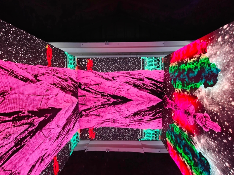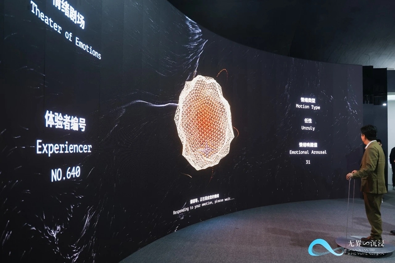 观众能在现场体验可互动创作生成的《人工智能无限电影》,利用AI技术将情感可视化的《情绪剧场·山水心境》等。这些作品横跨VR、AR、MR、环幕、三折幕及影像交互装置等多种技术形态,刷新了观众对于传统电影的理解。